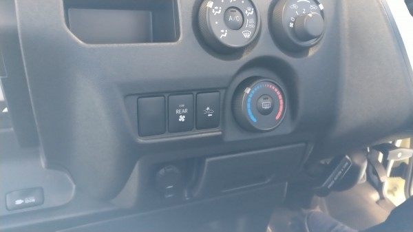 新車で納車直後のハイエースです。センターコンソールにメクラキャップがついていますので、そこを外します。