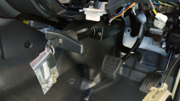 USBに引き続き、盗難防止装置も取付けしました。ブレーキロックジャパンの製品、ブレーキペダルロックです!