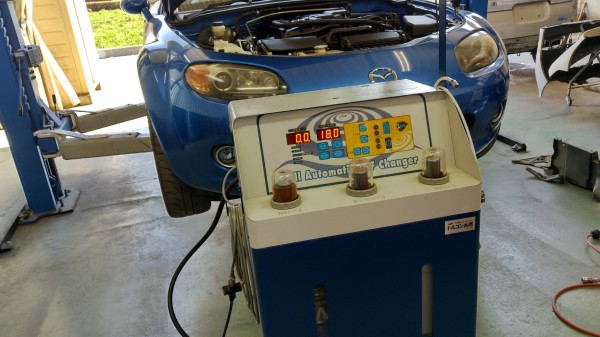 このNCは走行距離10万キロ超えです。今までATFの交換はなさそうです。最近は6速へのシフトアップがしにくい症状があるようです。通常ですと作業お断りのコンディションかもしれないですね。