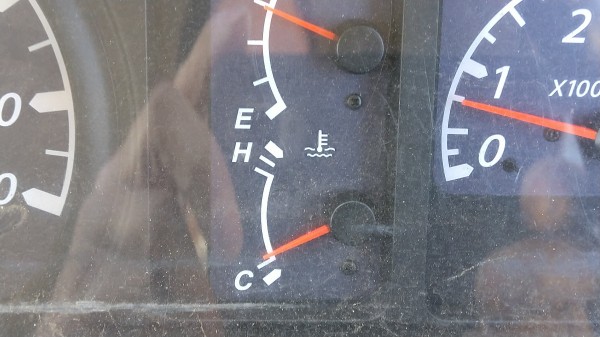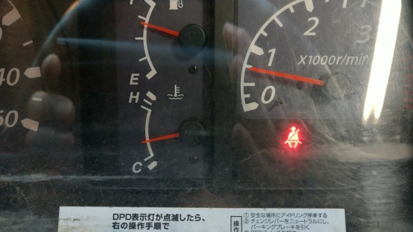 車検で預かったエルフがDPDランプ点滅しています。さっそくDPDボタンを押して再生モードに・・・始まりません!水温計は・・・低い。データーモニターしながらアイドリングしますが、水温50~60度で上がりません。エンジン回転を上げてると少し針が上がりました。