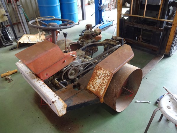 近所の中学校よりコートローラーのエンジンがかからないけど、直せるかな?とのご依頼です。現地でみて、「旧型で部品が無いのでエンジン載せ替えかも。」となりましたが念のため引き上げてきました。