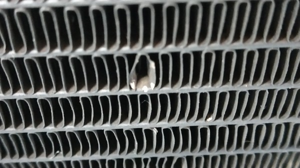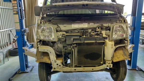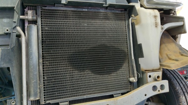 と、言ってもエアコンはちゃんと冷えています。ただバンパーのすき間から見えるコンデンサーに汚れが・・・。
