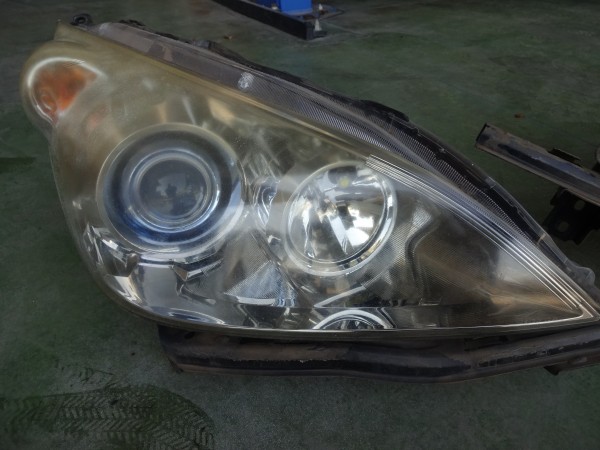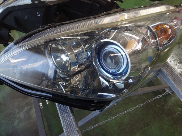 車についたままでも出来ますが、隅までしっかり仕上げる為に外しました。磨いていきます。磨き方も試行錯誤しています。で、磨いたままだと1ヶ月で元に戻ってしまいます。塗装をしますが、ライトの材質はデリケートなので慌てずに。乾燥させてから磨いて完成となりました!